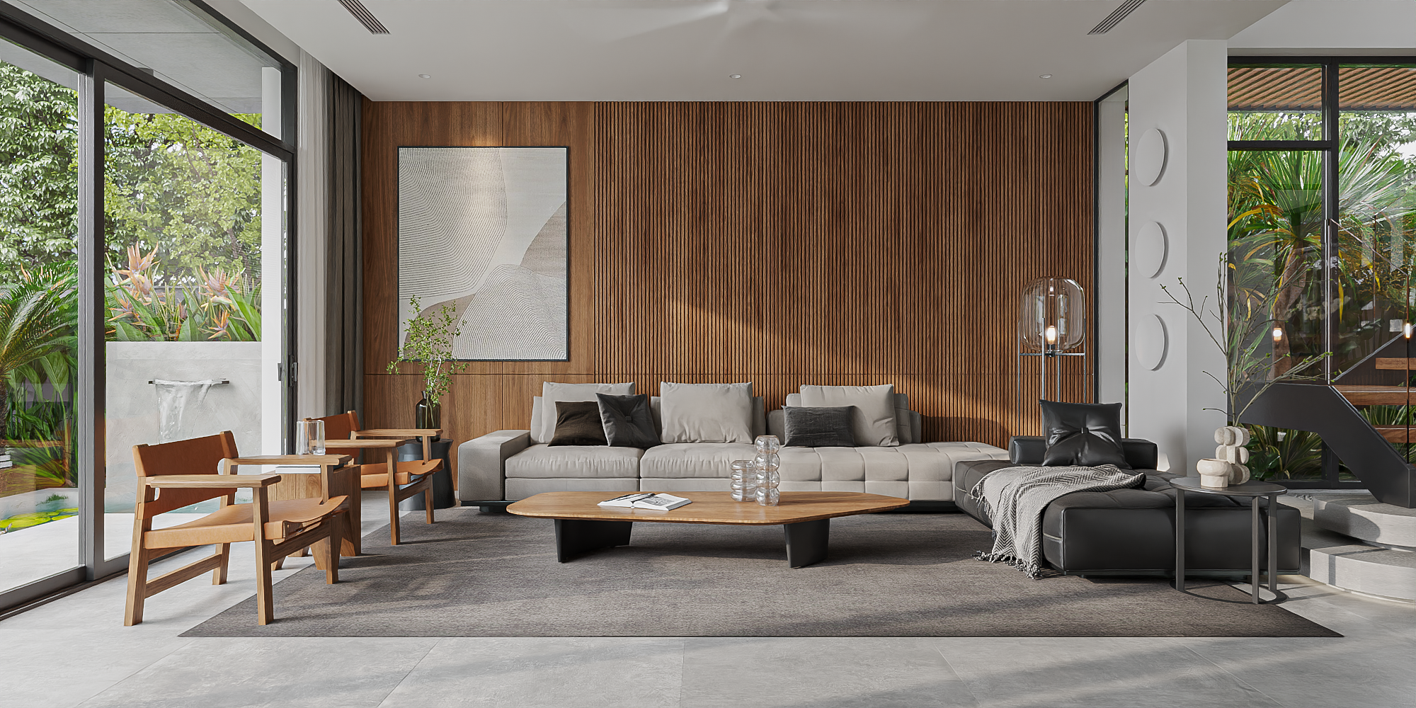 Lô đất xây dựng HD1 House có diện tích 7.5x22 m. Mặt tiền chính hướng Tây Nam có sự bất lợi do ảnh hưởng nhiều bởi nắng gắt, bởi vậy bài toán chúng tôi cần phải giải quyết là giảm thiểu được bức xạ nhiệt mà vẫn đảm bảo tối đa lượng ánh sáng và thông gió tự nhiên cho ngôi nhà… Giải pháp hình khối công trình thiết kế đưa ra mặt tiền khối thò thụt tạo ra hàng hiên, khoảng sân kết hợp với lớp cây xanh phía trước che chắn tạo khoảng đệm, giảm ảnh hưởng trực tiếp từ ánh nắng mặt trời tác động vào các không gian chính trong nhà. Hệ mái ngói che phủ kết hợp vườn cây mái trồng cây xanh sẽ giảm thiểu sự hấp thụ ánh nắng và tạo điểm kết nhẹ nhàng.
